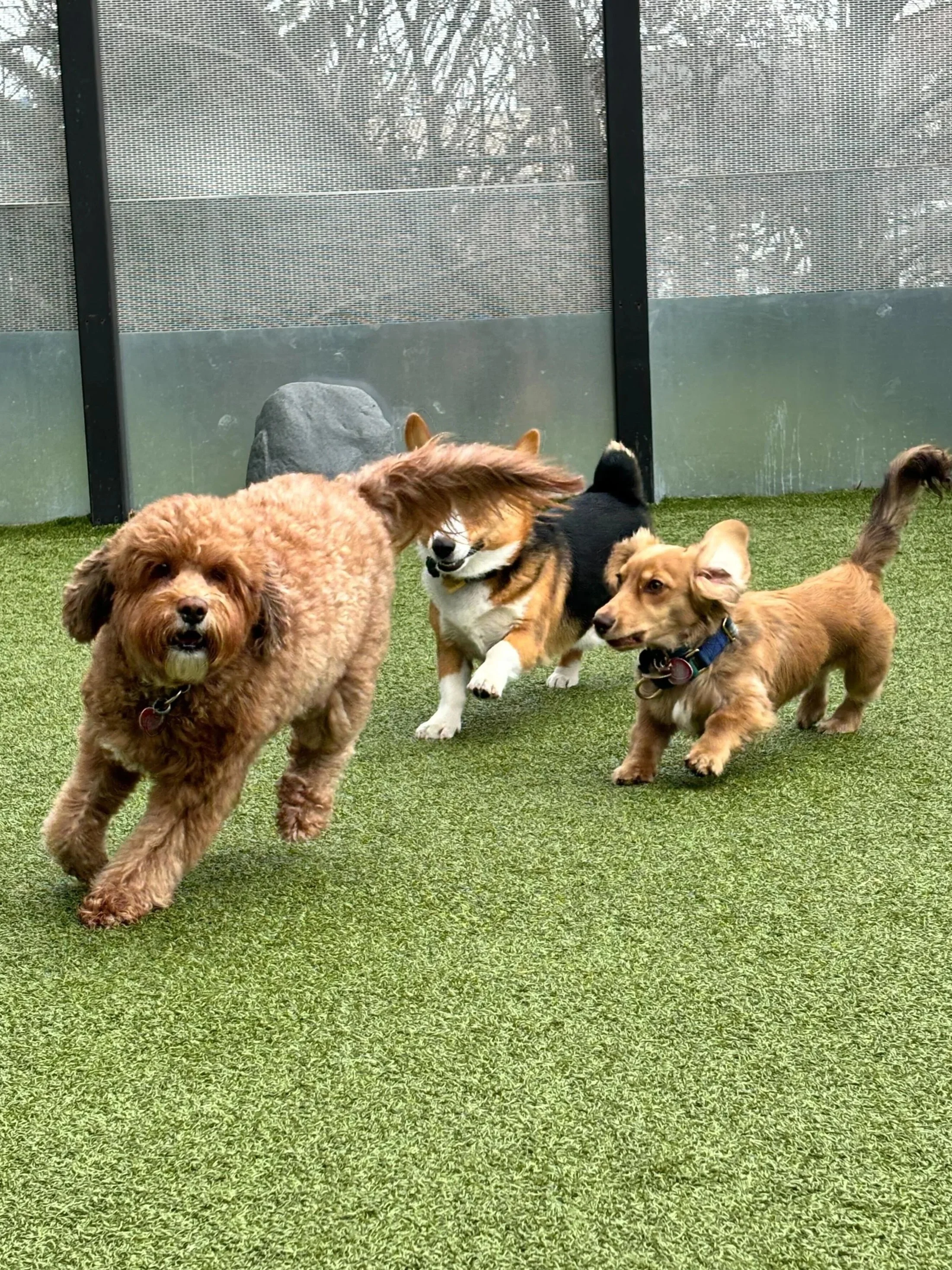 Our top priority is ensuring a balanced and safe environment for your pup. Unlike other daycare providers, we maintain a strict capacity limit of 35 dogs per day, divided between our two runs for large and small dogs. This limit is based on factors like dog-to-handler ratios and the size of our facility.